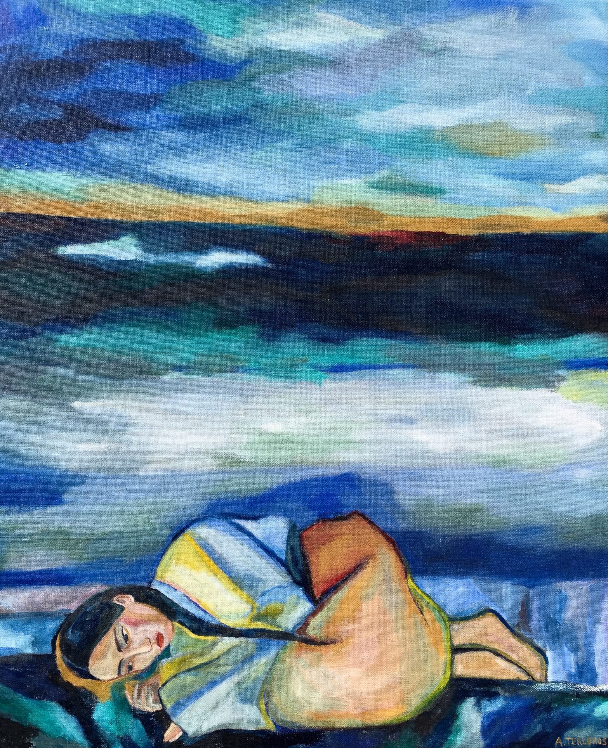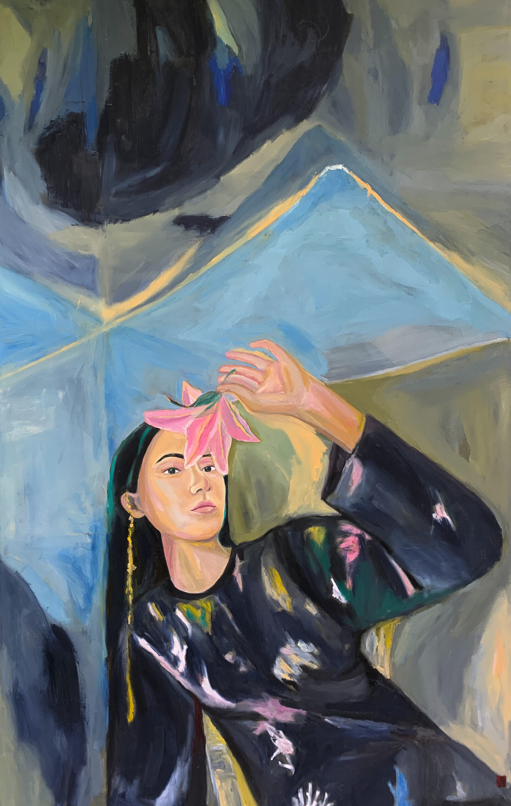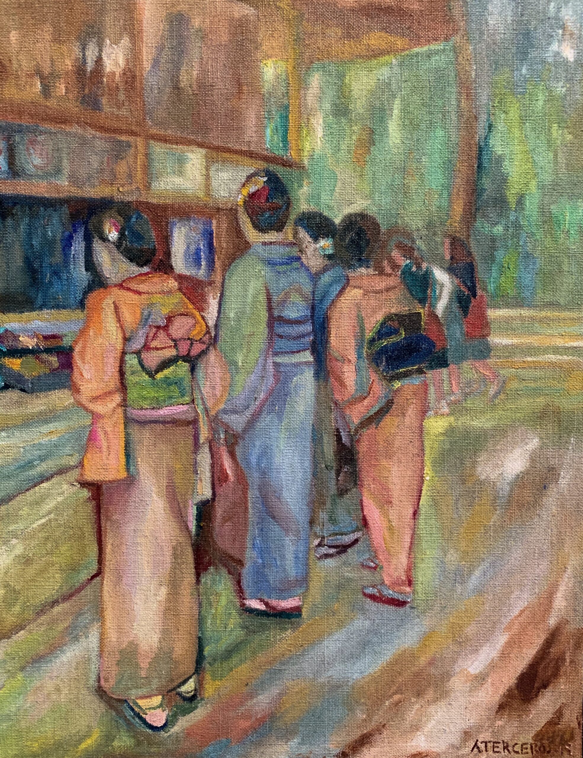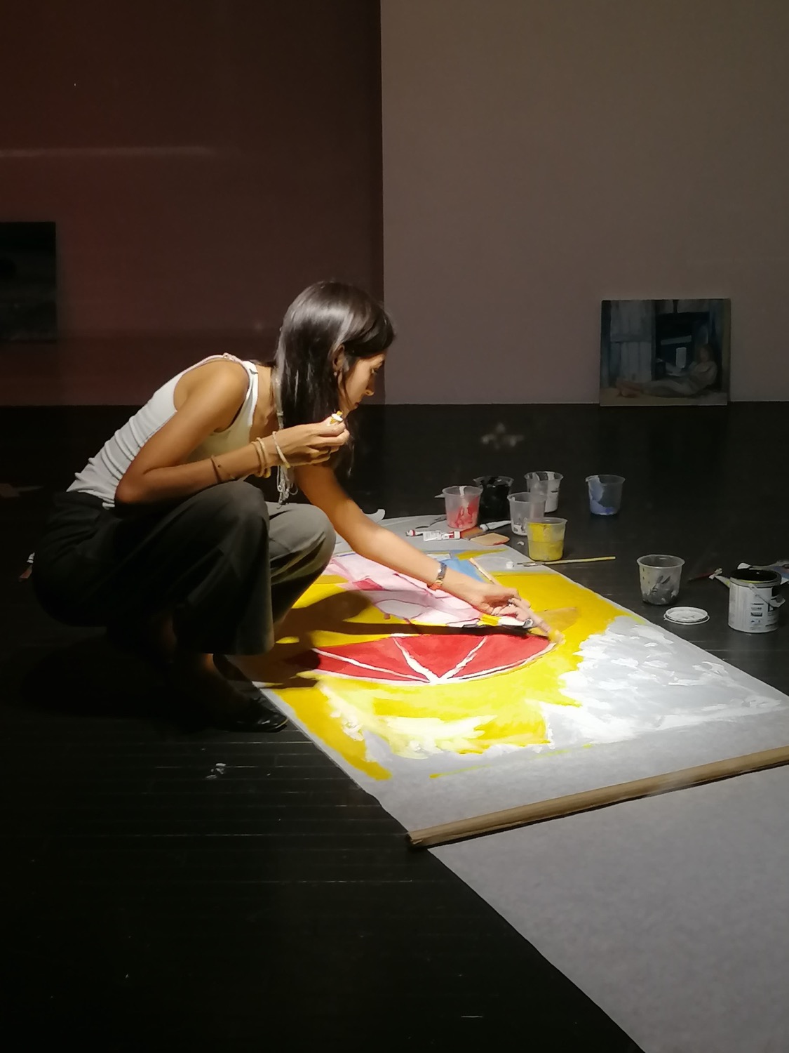 Empecé a pintar siendo muy joven, pero de forma profesional lo hago desde los 15 años, después de ganar una Bienal Juvenil de Arte en Santa Cruz. En 2018 tuve mi primera exposición individual. Trabajando en Tokio tuve que determinar horarios por las noches y los fines de semana para pintar. Expuse colectivamente en el barrio Harajuku, uno de los más frecuentados de la ciudad; mi espacio era una pared de 2,5 metros, con una puerta al medio, pero yo estaba realizada. ¡Estaba exponiendo en Tokio! Un mes después tuve mi primera exposición individual, era en un bar cerca de mi trabajo. Tokio es conocido por tener lugares muy pequeños, ese bar era uno de ellos. Luego me presenté en la galería Shakespeare y en UltraSuperNew. Paralelamente, con una amiga DJ empecé un proyecto llamado Domestic Island; hacíamos sesiones de música y pintura al vivo, y colaboramos con distintos artistas y músicos.