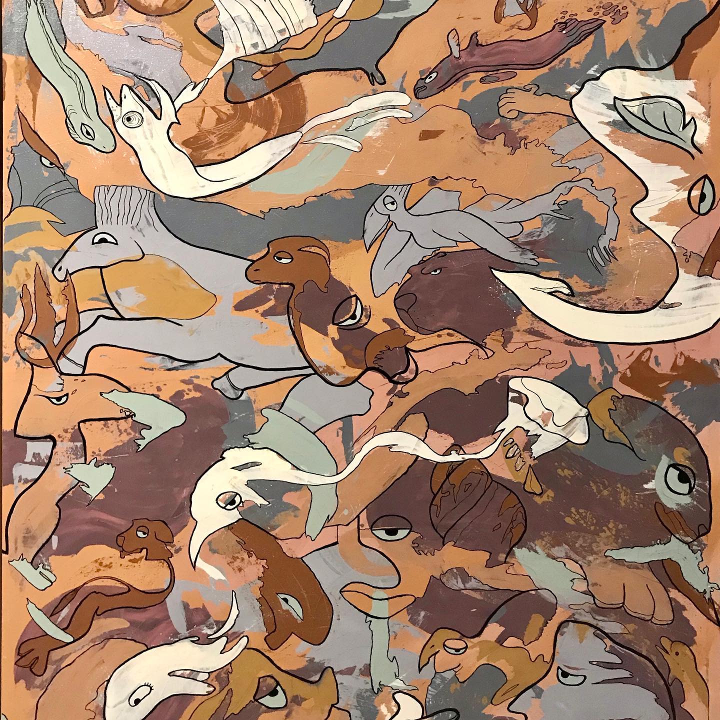 Un nuevo artista había surgido. Su enamorado le propuso irse a Francia con él y dedicarse por completo a la pintura. El 2021, pese a las restricciones sanitarias aún vigentes, la pareja se movió entre París, Toulouse y Milán ganando experiencias y mostrando las creaciones del cruceño. «Mi estilo es abstracto-surrealista. Los motivos que pinto tienen una influencia de la fauna por la que siempre me sentí maravillado; es así que siempre verán en mis pinturas referencias de aves, monos, insectos y peces», expresa Danilo que, asegura, los representa de forma “caricaturesca”, usando una estética basada en los dibujos animados que veía en su niñez y que imitó en sus cuadernos escolares.