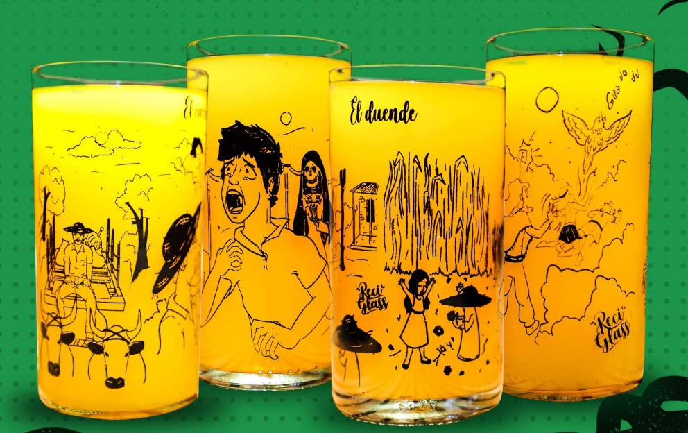 Y claro que es así, las temáticas con las que lanzan sus productos ayudan muchísimo. Así tenemos la colección “Mitos y leyendas”, con el carretón de la otra vida, el duende, la viudita y el guajojó, y “Flora y fauna”, una serie que muestra nuestra naturaleza. Todos fueron exitosos, pero el que se lleva el máximo galardón es el vaso bautizado como Fernetómetro, hecho “pa’ medir tu nivel de yema” (para quienes nos lean fuera de Santa Cruz: para medir tu nivel de borrachera). Y por si alguien o una empresa quiere vasos personalizadísimos, ReciGlass los puede hacer. Ya saben: no todo es basura, se puede reutilizar y vale la pena.