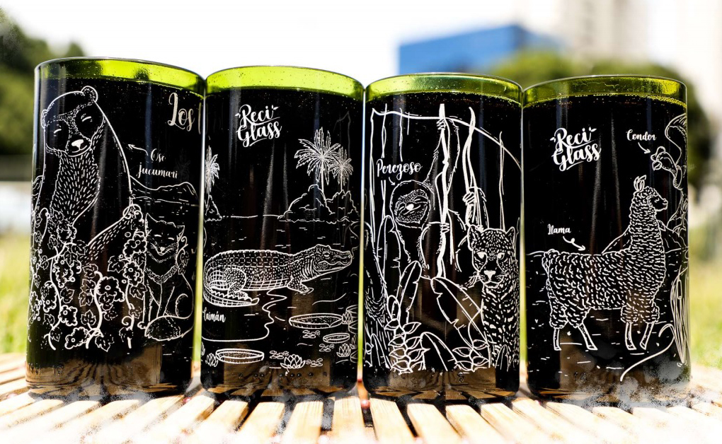ReciGlass lleva año y medio de producción. Tiene colecciones sobre las leyendas, la flora y la fauna de Santa Cruz, y un vaso para medir el nivel de borrachera.