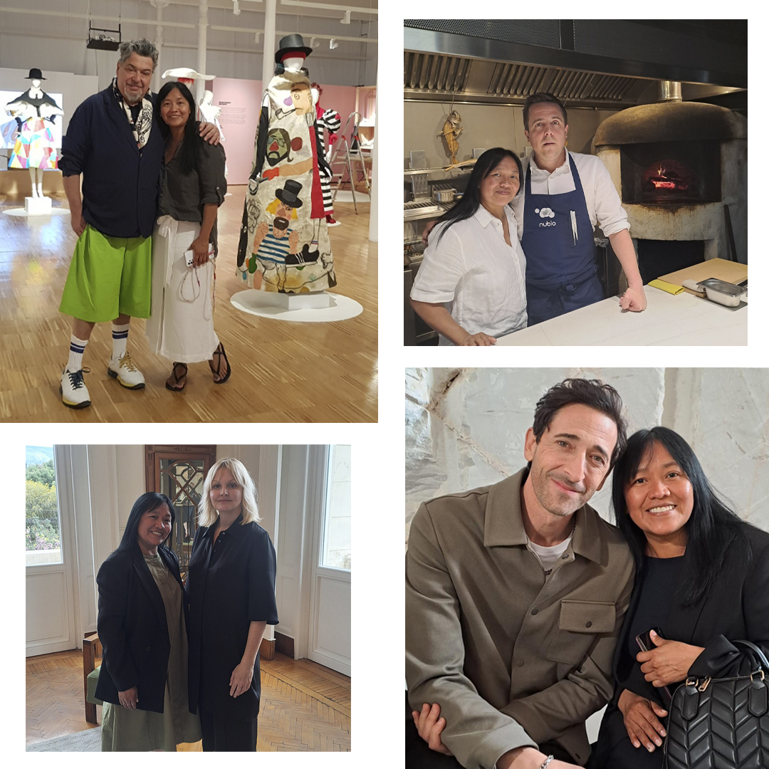 En el sentido de las agujas del reloj: Roxana con la diseñadora Karin Gustafsson, el diseñador Manuel Fernández, el chef Miguel Caño y el actor Adrien Brody.